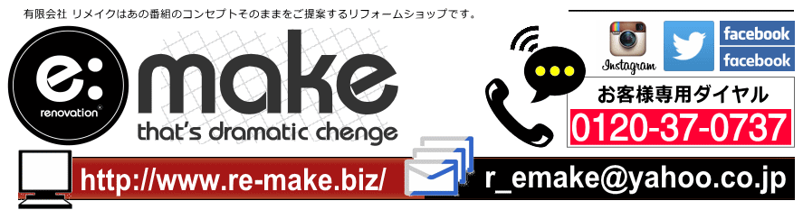 平成から令和にかわり有限会社 リメイクのロゴマークと字体を一新しました。より分かりやすくシンプルに変更いたしました。