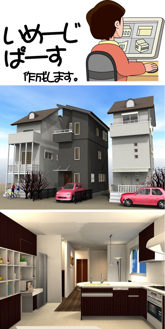 有限会社 リメイクではお客様のプランをイメージパースにてご提案しております。イメージパースにすることによりお客様の大切な家を解りやすくまたはミスのない新築プランを進めお客様のご予算またはご希望を解りやすくご説明いたします。