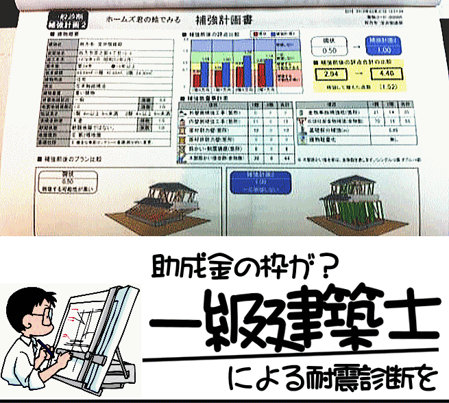 一級建築士による耐震診断の結果、補強が必要の結果に枚方市にて補助の申請するが、様々な条件が合わず補助は受けれなかったが耐震工事は執り行いました。